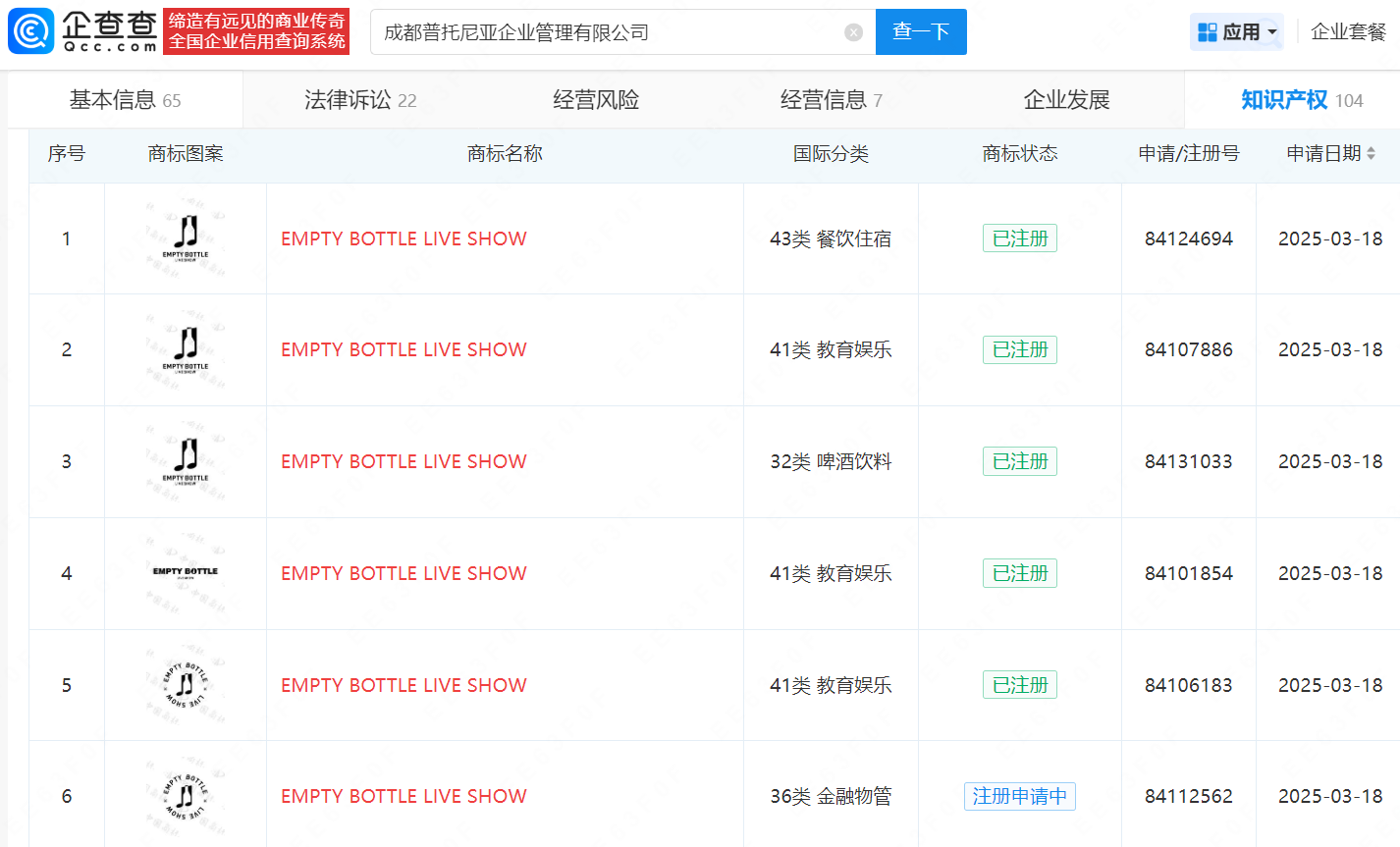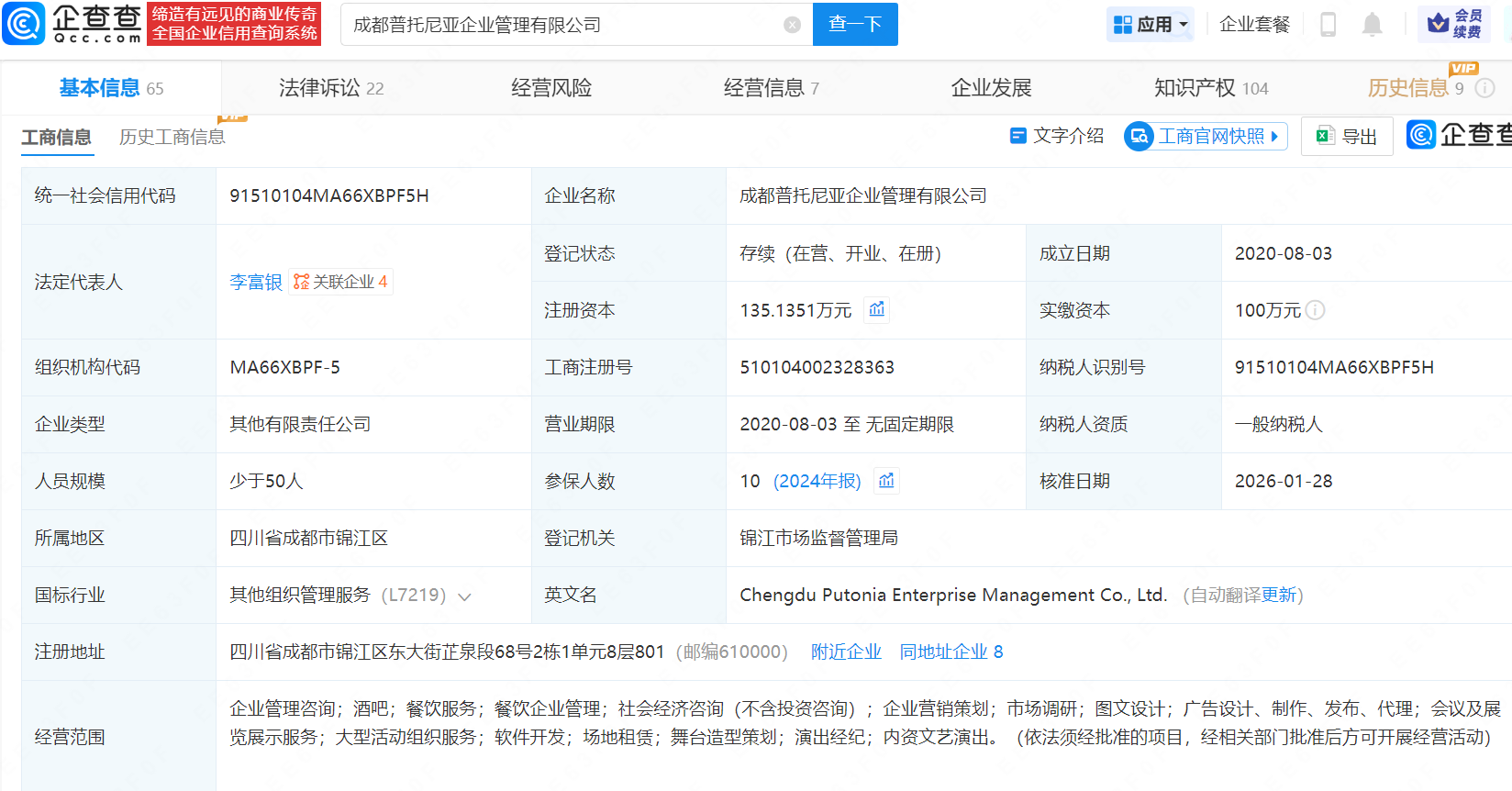 近日,成都普托尼亚企业管理有限公司发生工商变更,新增王思聪名下北京达德厚鑫投资管理有限公司为股东,同时注册资本由约113.5万增至约135.1万元。该公司成立于2020年8月,法定代表人为李富银,经营范围包含企业管理咨询、酒吧、餐饮服务等,现由天津漫吉企业管理合伙企业(有限合伙)、天津好吉企业管理合伙企业(有限合伙)、上海铠言企业管理有限公司及上述新增股东共同持股。企查查信息显示,该公司曾申请注册多枚“EMPTYBOTTLELIVESHOW”商标,国际分类包括餐饮住宿、教育娱乐、啤酒饮料等。据媒体报道,此前,王思聪投资了杭州ICON项目的主体公司杭州杯盏商业管理有限公司,后者包括空瓶子liveshow以及多家风格不同的酒吧。